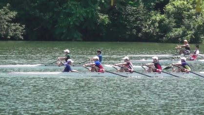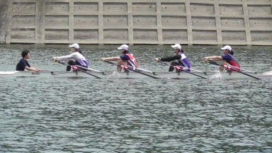 | 21年8月16日 | 今日の予選は弱い風が吹く穏やかな条件で行われました。女子クオド予選4組は田村の他に佐野、旭丘、松江北、東筑の5クルーの出漕でした。スタートから5クルーが団子状態で競り合い、田村は500mを3位で通過しました。しかし、その後、他艇に離され、4位でのゴールでした。タイムは3分57秒でした。4位になったので、インターハイは敗退です。後半タイム落ちするのはこのクルーの課題でしたが、その課題は克服できませんでした。当然のことですが、今までの練習でできなかったことが本番のレースでできるはずはありませんね。 |