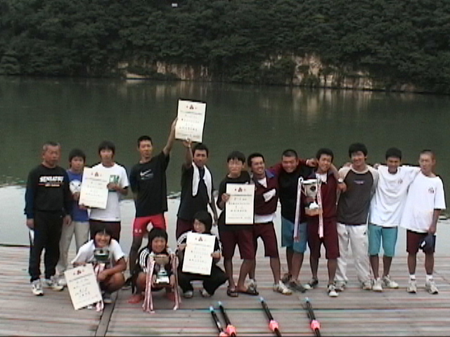 | 04年8月24日 | 8月17日から20日まで荻野漕艇場で新人クルーの合宿を行いました。インターハイ期間中は水上練習ができませんでしたし、9月初旬に行われる新人戦に備えるためです。国体に出場する詩織さんも一緒に参加しました。この時期の荻野漕艇場は各地から多くのクルーが集まってきてにぎやかになります。埼玉県、東京都、宮城県の各チームと地元の新人クルー、国体選抜クルーが入り乱れてコース内では有効な練習ができない状況でした。ほとんどの練習は上流で行いました。男子クルーは3年生が1人抜けただけなので今までとほとんど変わりません。新人戦はクオドで優勝をねらいます。今回の大会から1年生の通君がダブルスカルを漕ぐことになります。女子は3年生が抜けた穴は大きく、残った5人でダブルとシングルで挑戦します。シングルは1年生の愛美さん、ダブルは2年生の千紘さんと直美さんのクルーと、1年生の裕絵さんと麻未さんのクルーです。麻未さんは入学当時から3年生クルーのコックスだったので、今回の合宿で初めて漕ぐことになります。2年生クルーは優勝をねらいます。シングルはまだ慣れませんが、体が大きいのでパワーを発揮できればかなりやれると思います。 |