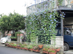 2006年はアサガオ(ヘブンリーブルー)を植えてみました。かなり成長が早く、毎日の水やりが大変です。