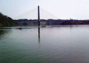 | 08年5月29日 | さくら湖の水位が下がり始めました。6月10日頃までに約8m下がります。夏の時期の台風や集中豪雨に備えて毎年水位が下がります。当然、桟橋も下がりますが、桟橋までのスロープが今までの倍になるので練習終了後に艇を上げるのが大変になりました。雨の日が続きますが、雨の日の方が湖面の状態が良いので効果的な練習ができます。1年生はまだまだですが、2、3年生のクルーの仕上がりは順調です。綾華さんの艇の修理も終わり、練習を再開しました。 |
