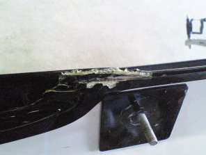| 折れ曲がったバックステー(左)とクラッチピン(右) | |