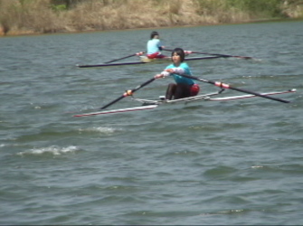 | 08年6月7日 | 朝から風が弱く良いコンディションでレースが行われました。女子シングル予選B組は3レーンが綾華さん、4レーンが耶麻農業の佐藤さん、5レーンが喜多方東の庄司さんの3クルーの出漕でした。スタートから綾華さんが飛び出し、まったくの1人旅でした。いつもより丁寧に引いている感じで、タイムは3分58秒で2位の庄司さんとは37秒の大差でした。別な組で1位だった西会津の鈴木さんより2秒良いタイムでした。男子シングル予選A組には勝芳君が出場しました。2人が棄権したため、喜多方工業の佐藤君と2人でのレースでした。勝芳君はスタートで失敗し、オールを離してしまいました。あわや「沈」の状態でしたが、何とか持ち直し、漕ぎ始めたときには、相手ははるか先にいました。1位から約30秒遅れの4分26秒でのゴールでした。男子シングル予選B組に出場した永太君も1人が棄権したため、川口の滝沢君と2人でのレースでした。スタートからついていこうとしましたがすぐに離されました。まるで切れた凧のように右へ左へ動き回り、審判艇に何度も注意されました。タイムは4分17秒でした。女子ダブル予選A組は川口Bとの2クルーのレースでした。スタートで少しリードしましたがすぐ並ばれ、その後は徐々に差が開き、ゴールでは2秒差で負けましたが、タイムの3分56秒は追い風だったにしても良いタイムでした。男子ダブル予選A組は2レーン田村、3レーン喜多方商業、5レーン喜多方Bの3クルーで行われました。スタートしてすぐ喜多方商業がリードしましたが、すぐに田村がトップに立ち、徐々に差を広げました。結局、2位の喜多方Bに5秒差をつけて3分43秒でゴールしましたが、前半あまりにも遅すぎました。午後から行われた女子ダブル敗者復活戦は田村が順当に勝ち上がり、明日の決勝に進みました。男子クオド予選A組は喜多方商業、1年生クルーの田村B、喜多方東の3クルーの出漕でした。田村Bはスタートから置いていかれ、3分44秒で3位でしたが、真っ直ぐに進むという目標は達成できたようです。注目の男子クオド予選B組は会津と田村、それに耶麻農業の3クルーの出漕でした。スタートはやや田村がリードしましたが、すぐに会津が追いつき、競り合いが続きました。後半は会津が抜けだし、2.3秒差で田村は敗れました。田村のタイムは3分11秒のベストでしたが、その前に会津がいました。 |