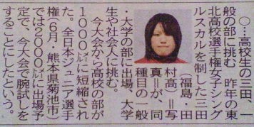 | 地元の河北新報に綾華さんの記事が載りました。 | |