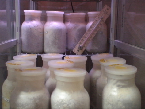 | オオクワガタの菌糸ビンは20℃で管理しています。 | |