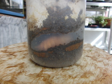 | 10年10月23日 | さくら湖自然観察ステーションで第2回のオオクワガタ飼育教室を開きました。7月10日に菌糸ビンにセットした幼虫を新しい菌糸ビンに詰め替えました。今年の夏は猛暑だったので幼虫の羽化が早まり、蛹室を作ってしまったものもありました。詰め替える際に幼虫の体重を測りましたが、最高は21gでした。間違いなくオスになる幼虫です。今までの経験から15gを越えていればオスになるみたいです。メスになるだろうと思われる幼虫だった子どもたちには、オスになる幼虫が入った菌糸ビンをお土産に持たせました。あとは冬の間、暖かい部屋に置いて、来春以降に羽化するのを待つだけです。 |