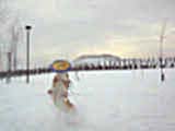 大きい子たちは、深い雪の中でもどんどん走って行ってボールを取って