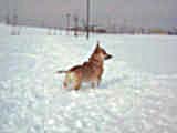 ボビーちゃんは初めての雪遊びに挑戦したそうです。
