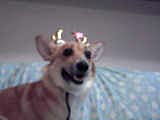 トナのツノを付けられ、いつもと違う夜だってことはすぐ感じたらしいあーたんは、ワクワク顔で待っています。 |