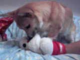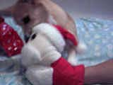 「さーさー、お次は何かしら?」って顔してるでしょう? ふふふ(^。^)次はプレゼントよ。 この間、ショップへ行った時に、あーたんが異常に興味を持っていたサンタさん人形を渡しました。 |