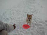 | 本物のディスクを持って来れずにいたあーたんに「困ったものだなぁ」っと頭を痛くしていた。 だから今日の練習もきっと上手いこといかないだろうと思っていた。 でも今日のあーたんは、ちょっと違っていた。 公園に着いてリードを離したとたんに、すぐにディスクを催促して来た。 これっていいタイミングだなっと思い、本物のディスクでスローイングした。 あーたんも猛ダッシュ! ディスクがヒューっと飛んで行き、雪の上にパタンと落ちると、あーたんはパクっとくわえて走って来た。 ママとパパは我が目を疑ったヨ。 そして大歓声!!! 「よーし!よーし!上手だねーぇ!」って拍手喝采 (^o^)/ 昨日までは硬いディスクを持って来れずに「これつまんない!いつもの柔らかいやつでやろー!」って顔してたのに、今日は何度続けてもイヤな顔せずにちゃんと持って来てくれました。 わ〜っ、嬉しいな〜ぁ(^o^) ジャンピング・キャッチは1回も成功しなかったけど、ちゃんとディスク持って来れるようになったのでとっても嬉しいです。 あーたん、凄いゾ! |