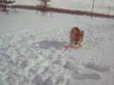 | 新しいディスクを見たあーたんは大騒ぎ。 走り出した後、キャッチを試みるが失敗。 あーたんは失敗だけど、ママは心配。 ちゃんと持って来れるかな? 「持っておいでー!」 あーたんはパクっと口でくわえたがすぐにパタンと落としてしまった。 そしてまたくわえようとして、今度は両手でディスクの上をバタバタしはじめたので、ディスクはどんどん雪の中に埋まっていってしまった。 何度か試してみて分かったのだけど、ディスクの着地点から落とさずに持って来ることが出来ないの。 一度落としてしまうと、必ず両手でバタバタさせて雪の中に埋めてしまって、最後は「取れない!」って怒って吠えてる。 困ったなーぁ(^^;) |