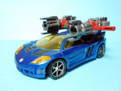 スピードブレイカーRのビークルモードはセイバートロンスタイルの超高速車両。さらにフォースチップパワーをイグニッションすることでリフレクションフィールドセイルが展開し宇宙空間も走破することが出来る。