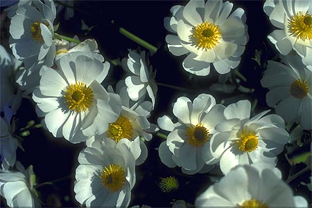Marguerite(マーガリート) 写真のイエロー・スノー・マーガリート(黄色)は 南島の標高の高い場所に生息するマーガレット種 ですが、他にも花の色,葉の形が異なる種類が いくつかあります。右はスノーマーガリート? 風が吹くと花びらがひらひら揺れて、柔らかい印象 の花達。乙女心をくすぐります(?)。 開花期は12月から2月。きく科。 |