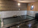 やはり老舗旅館に相応しく、中浴場とは言え、石造りの広い湯船は大きく明るく清潔感があります。絶えず流れ出ているお湯は透明マイルドで熱めで、硫黄の香りがとても心地よく、よく温まります。日中時間帯ということもあり、ここも他に入浴客はおらず(学生団体のような宿泊客が送迎バスで10数人出発していきましたが)貸切状態で1時間弱、静かにゆっくり入ることができました。かけ流されるお湯の音以外は何も聞こえず、静寂な中で硫黄の香りに浸りながら、寛ぐことができました。こちらも老舗旅館ながら、とてもアットホームな雰囲気で、気軽に立ち寄ることができました。