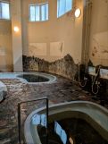 日帰り入浴は、昔ながらの重厚な木造建築の湯治屋玄関での受付となります。最初に玄関右手方向の山水閣にある豊沢の湯に入りました。真新しく高級感ある山水閣にあり、脱衣場、浴室とも高級感があります。男女別半露天風呂と洗い場があり、豊沢川と山間を望むことができます。次に湯治屋へ戻り、薬師湯へ入りました。階段を下りたところに脱衣場があり、男女別の内風呂があります。天井が高く、タイル貼りの昔ながらの湯舟は、あつ湯とぬる湯の2つがあります。浴場内にはレトロムードが溢れています。