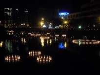 今日は福井城址お堀の灯りというイベントをやっている、ということでちょこっとだけのぞいてみました。築城以来の往時を偲び、まら空襲や震災で亡くなった人々を鎮魂し、6,800個の灯りでライトアップされています。