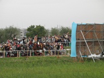 | ■奈良せんとくんツアー(2010年10月30日〜31日) 10/31(日) 平城京跡 → 興福寺 → ANA040 20:20 伊丹発、21:35 羽田着 10時のチェックアウトに合わせて、今朝はゆっくりと。荷物はホテルに預けて、昨日に引き続き奈良へ向かいます。 今日の方が、雨降りそうな怪しいお天気… 奈良に着いた頃には降り始めていました( ̄□ ̄;)!!ガーン 最寄駅からは歩いても行けるけど、雨降ってるし、シャトルバスはどんどん来ているようなので… バスで、今回の旅のメインの目的、平城京跡へ。なんだか、思った以上にすごい人です((;・・ヘ) 昨日、電車から見たより多い… 昨日は台風で控えた人が多かったのかな? 朱雀門と開場の間には、ふつーに電車が走っています。にわか、取鉄になるあっちゃんたち(笑) 1300年前、日本の首都だった平城京の宮殿跡。広い…