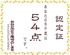 | あなたはある程度異性にもてます。ただ、このくらいのモテ度の人は少なくないですから、あなたの足りない部分をもう少し強くて下さい。今、少しもてたからといっても、たまごっちやルービックキューブのように一時で終わってしまっては意味がないですから、継続的な努力も必要です。 |