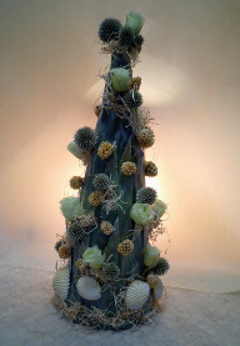 受講料・・・8400yen〜/回 花材込み スタイリッシュやエレガントなアレンジのデザインを楽しむコースです。 趣味で楽しんで頂く方や通年学んでいきたい方向けです 8月の作品 コーン型サマーデザイン 受講料・・・11200yen 花材すべて込み 貝などをあしらいオールラウンドに制作していきます。 |