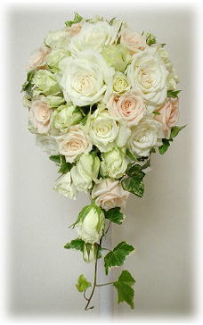◆オーバルブーケ(88) バラ(ティネケ・シャンパン)・ スプレーバラ(ビビアン)・アイビー ¥25.000 |
