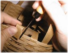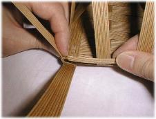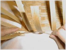 1.紙を敷き、縦ひもに両面テープを3本横に