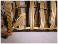 を縦ひもの裏側に置き、洗濯バサミでずれ