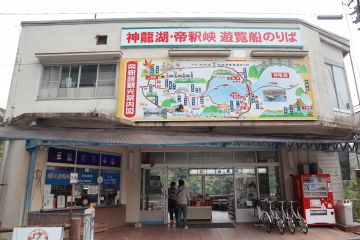 朝から観光。 遊覧船に乗りたくて 事前に電話で確認。 予約制ではないらしい。 来店順らしいけど、 大丈夫なのかしら? 『神龍湖周遊 帝釈峡遊覧船』 JAF割引1人720円 |