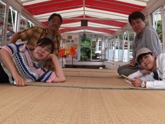 『さとやま屋敷』 お茶とお漬物を いただいて、 縁側でほっこり。 昔の遊具で 遊ぶこともできるよ。 ホイール転がし、 昔やったよねって、 れいちゃん。 えっ!!いつの時代や。 私したことないぞ。 ころころ楽しかった。 |
