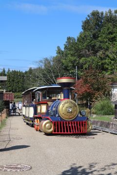 中の広場から目的地の ひばの里へ向かおうとすると、 ポッポー、 ロードトレインがやって来た。 乗ってみたかったなぁ。 今回は時間がないので、 また今度。 |