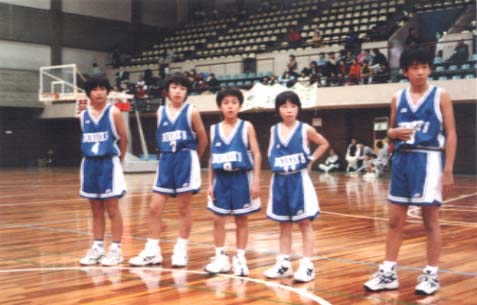 4:松井雄也(チームキャプテン、強気なプレーでチームをひっぱってくれてます。バスケのセンスはすばらしいものがあります。) 7:遠藤正大(頼りなさそうで、実はかなり頼りになる存在。一生懸命ゴール下を守ってくれてます。) 9:岡本心平(ダンカーズ唯一の頭脳派。気のきいたプレーで、ベンチを「あっ!」といわせます。 11:秋沢康平(140cmない身長でも、負けずとゴール下までつっこんでいっちゃいます。チームのマスコット的存在) 13:森田将史(ディフェンスなら俺にまかせろ!とても素直ないい子です。県大出場決定の時は、いっしょに泣きました!) |