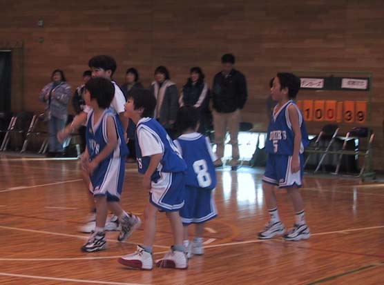 試合終了でみなさんにあいさつです。お疲れさまでした。この試合は、アンドリュウ、グッチー、圭祐が得点を決めてくれました。助っ人に来てくれたみんなも、ダンカーズ一年生達もみんながんばってくれました。この子達の一年、二年、三年、四年後がとっても楽しみです。