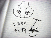 【似顔絵大会】 2005.02.07![]() ろしが、たい焼きをかって帰ってきてくれた♪ 「たいやき・・・」 こうやって見ると、不思議な形の食べ物だなぁ(笑 私は、しっぽからガブリ! みんなは、頭から派?それともしっぽから派? 寝る前に、自分たちの似顔絵を作ってみた。 ![]() にてるかな〜?(笑 わたしの両親の顔も描いてみた。 ![]() 描き方・・・同じなのに、似てる(爆 |