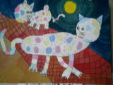 夜空と白い猫のコントラストが美しい作品。かわいらしく美しい作品に仕上がります。(toss静岡推薦)