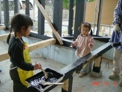 そういう意味では、この備長炭塗料塗りは恰好の施主が参加