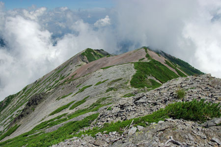 その左方には鹿島槍ヶ岳の南峰だけが、