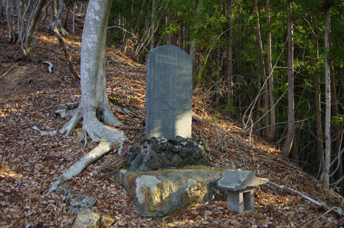 そこには 『 日留賀岳方面 』 と書かれた標識が立っており、その指示に従って尾根を左へと進む。 祠を過ぎると、道は斜面をジグザグに登っていくようになる。