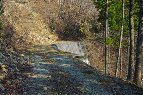 林道を右へと進むが、この林道歩きが結構長い。ただ勾配の方はほとんどないのがありがたい。 林道歩きがあまりにも長いので、