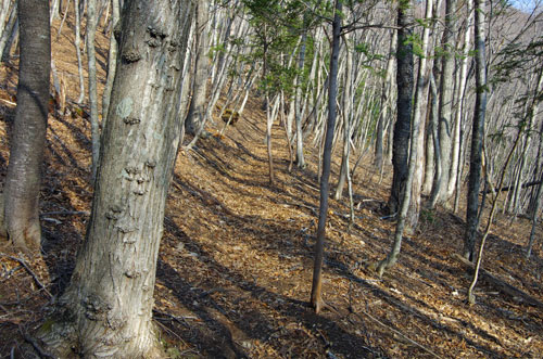 樹林帯の中をほぼ平らに進んでいく。 | ![]() |