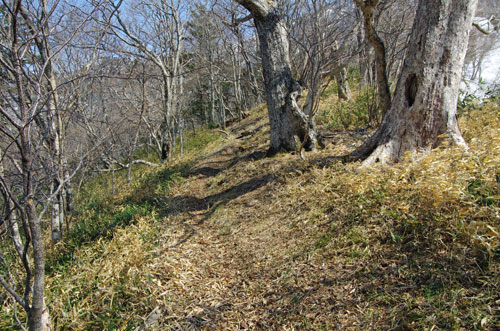 しかし、恐らくこちら側は北西斜面となるはずなのに、登山道はおろか、