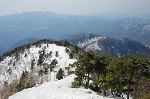 高度を上げて振り返れば、登り来たりし尾根筋がよく見える。