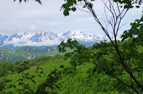 ようやく樹林が切れて北アルプス方面を見通せるようになる。 | ![]() |