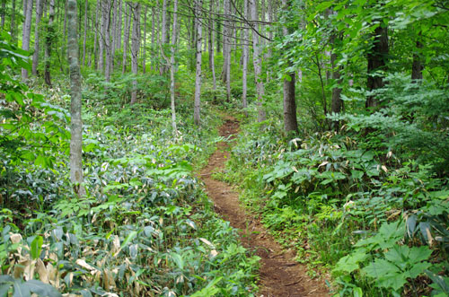 昨日は雨だったこともあるのだろうが、山自体かなり水を含んでいるような感じである。かといって湿気が多いと言う訳でもない。 写真のような樹林の中の道を登っていくと、少し傾斜が緩やかになる。 | ![]() |
