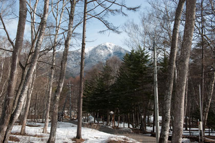 林から舗装道に出るところで飯縄山の姿をハッキリ見ることができるようになった。 |