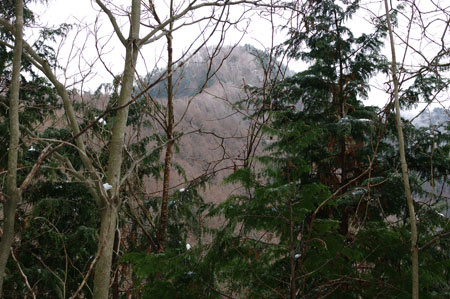 と思しき山が見えた。黒川山の見晴台から見た時に比べ、かなり低い所から見上げていることになるので、見晴台から見たそれとは全く山の雰囲気が違う。 |  |