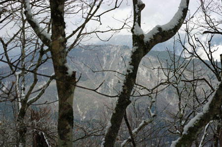 六本木峠から 30分程進んだ所で顔を上げると、樹林越しに大菩薩嶺