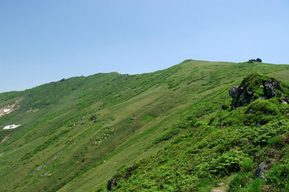 俎ー (マナイタグラ) 山稜というのであろうか、俎ーへと続く円弧が美しい。 |