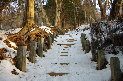 上記登山のデータ 登山日:2014.1.25 天候:晴れ後曇り 単独行 日帰り 登山路:中禅寺温泉−県営湖畔駐車場−一合目−三合目−四合目−五合目− 六合目−七合目−瀧尾神社(八合目)−九合目−男体山−(往路を戻る) 交通往路:瀬谷−横浜IC−(東名高速道)−東京IC−(首都高3号線)− 大橋JCT−(中央環状線・首都高川口線) −川口IC−(東北自動車道)−宇都宮IC−(日光宇都宮道路)−日光IC−日光市営駐車場 −(ここまで車。その後徒歩)−東武日光駅−(バス)−中禅寺温泉 交通復路:中禅寺温泉−(バス)−JR日光駅−日光市営駐車場−(ここから車) − 日光IC−宇都宮IC−(東北自動車道)−川口IC−(首都高川口線・中央環状線)−江北JCT−(首都高中央環状線) −葛西IC− 大井JCT−(首都高湾岸線)−本牧JCT−石川町JCT−狩場−(横浜横須賀道路) −新保土ヶ谷−(保土ヶ谷バイパス)−上川井IC−(八王子街道)− 瀬谷 (車にて)