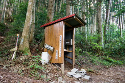 後はひたすら下るだけであった。 この 1,796m三角点からはほぼ下り一辺倒と言っても過言ではない。本当のよくもまあ登ってきたものである。 ところで、途中何回か登山道をはずしそうになったことがあった。幸い木につけられた赤テープで軌道修正できたのだが、 これが夜だったらどうであろうか。やはり夜の 7時頃に下るのを避けたのは正解である。 長い下りに辟易しながら、ようやく登山届提出の小屋に到着。時刻は 16時21分であった。 登る時に出した登山届けは回収しておいた。この日の登山者は 2人だけだったようだ。