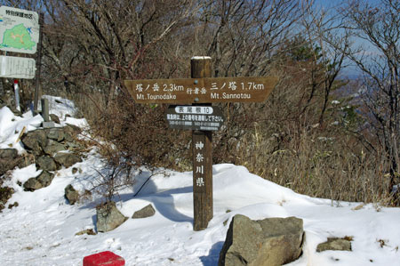 | 3. そして、行者岳の頂上には 11時48分に到着。    ここからの眺めも素晴らしく、富士山や塔ノ岳がよく見える。    頂上には石碑などがあったが、記憶に残っている石仏は見当た    らなかった。 |