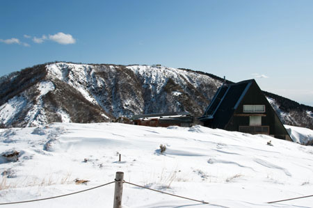 6. 平らな尾根を少し進めば やがて三ノ塔。時刻は 12時39分。    ここに立派な避難小屋が立っていたのでビックリである。ベンチ    に腰掛け、富士山を見ながら食事をする。富士山には雲が掛か    り始めている。 |